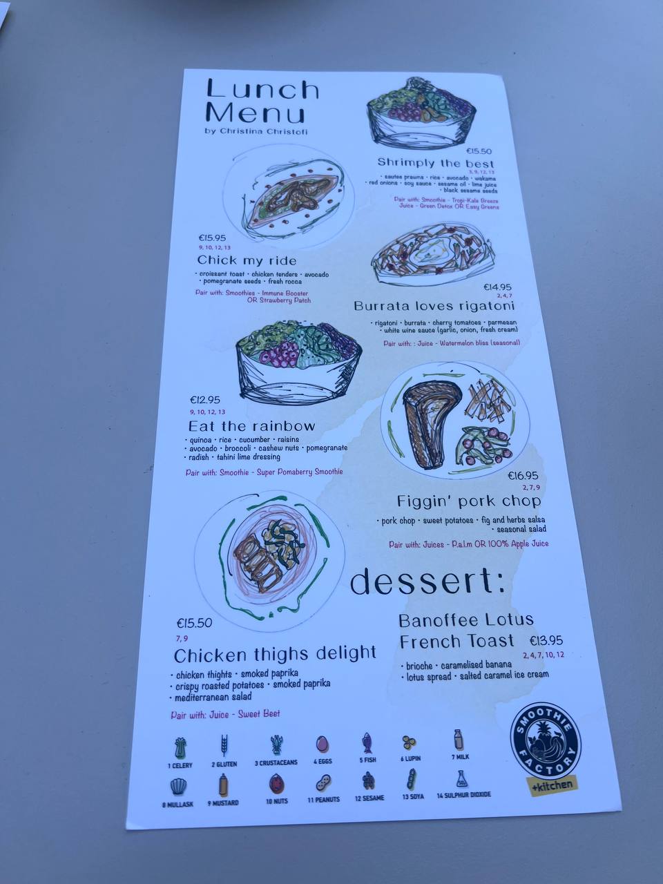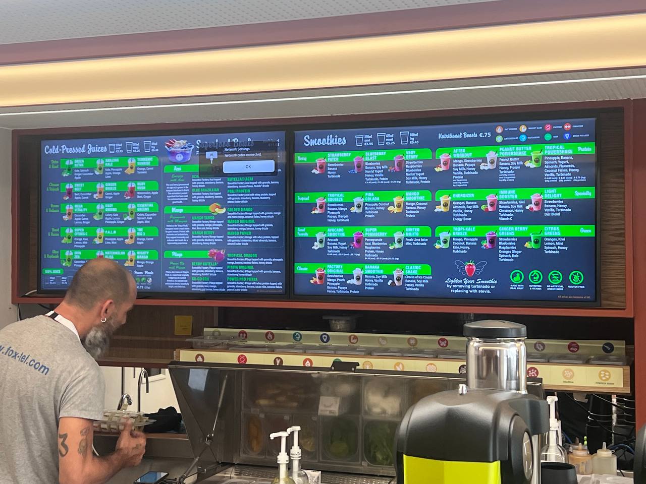 Смузи пока нет бумажного меню - а далеко, на телевизоре я тупо не вижу :)