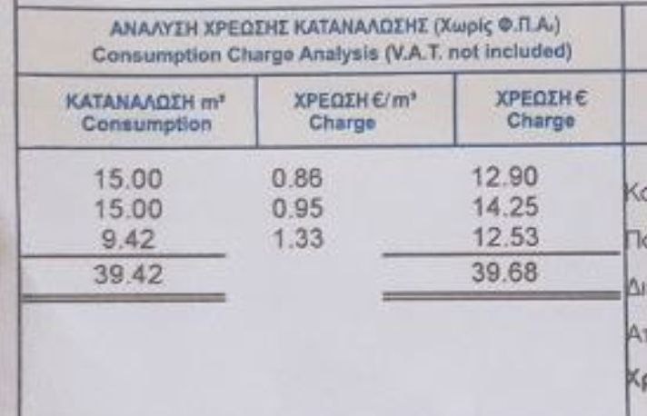 Я так понимаю что тут показания кто-то ходит и снимает за определенный период. Судя из платежки примерно раз в три месяца. Потому что мне хозяйка сказала что она никогда показания не подавала и вообще не вкурсе где они снимаются. И получается из моей платежки за 3 месяца потратили 39'42 кубометров воды. И из эту сумму делят: что первые 15 кубов 0.86 стоят , вторые 15 0.95 стоят и тд