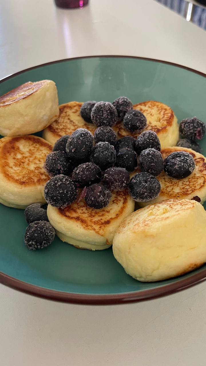 Сырники-анаринники под голубикой 🫐 расскажу секрет, чтобы были нежнее, натереть предварительно анари на мелкой терке, будут как пух 😌