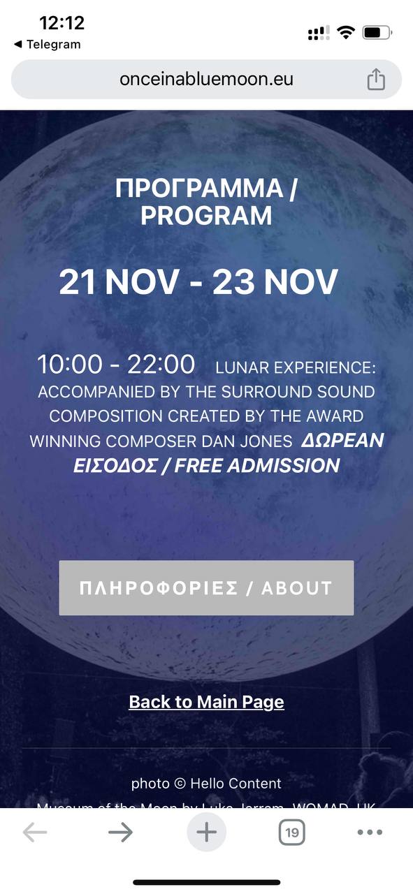 @pavloguruПо просьбе жителей Кипра муниципалитет Ларнаки и компании The Once In a Blue Moon и WonderDots решили продлить работу музея еще на три дня. Со вторника, 21 ноября, до четверга, 23 ноября, все желающие смогут увидеть макет ночного светила. Вход свободный.