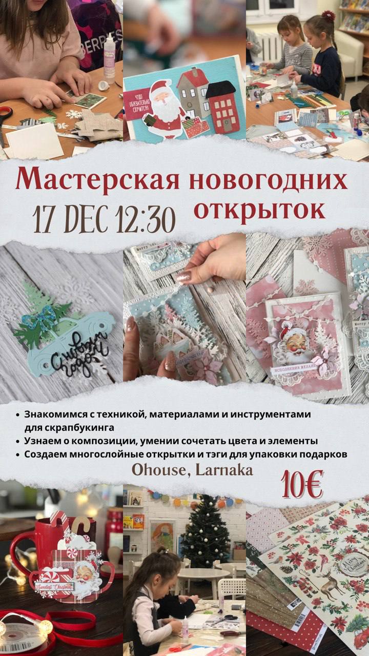 🎨12.30 мастерская новогодних открыток для детей и их родителей (стоимость - 10€, участие по предварительной записи);