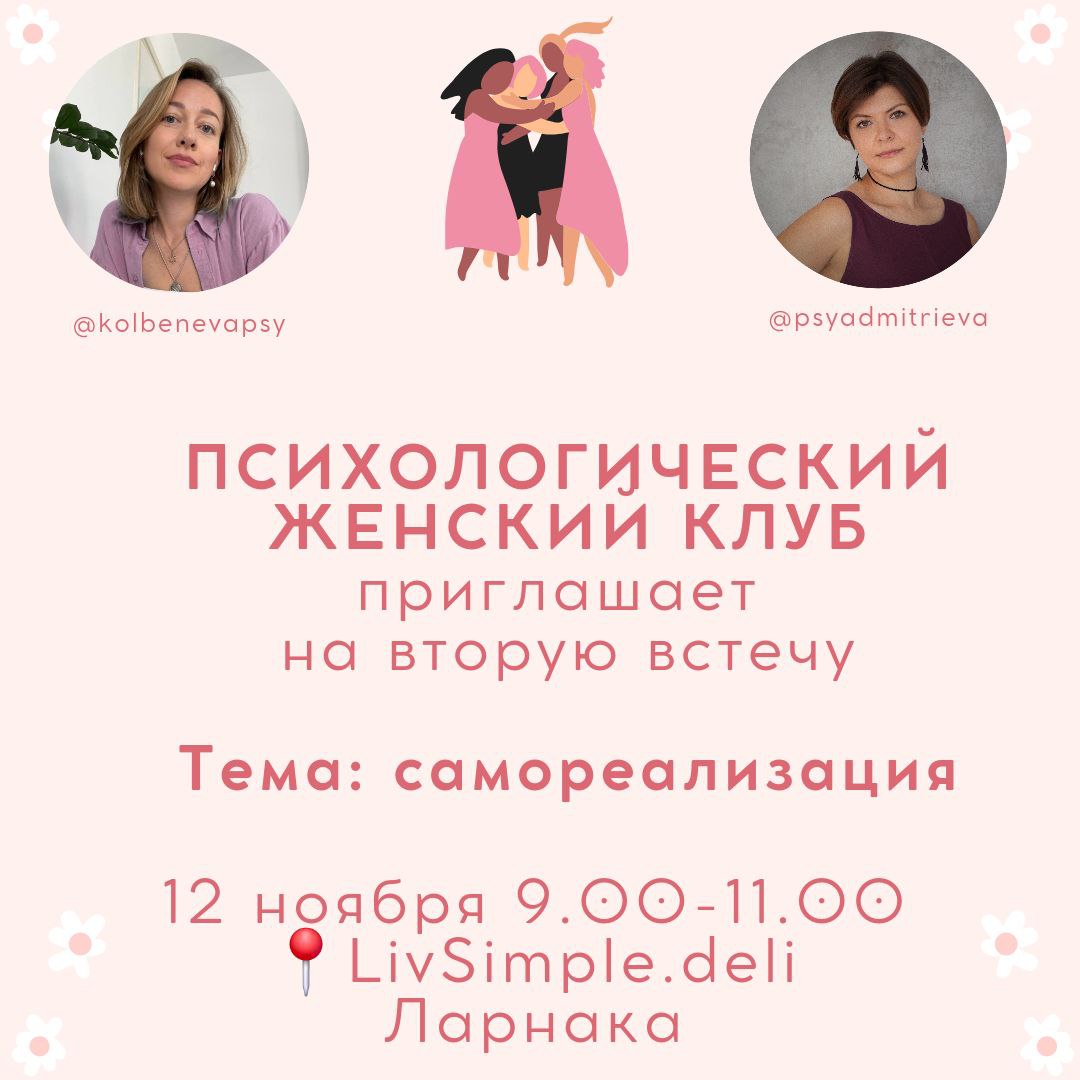 Приглашаем вас на вторую встречу женского психологического клуба!