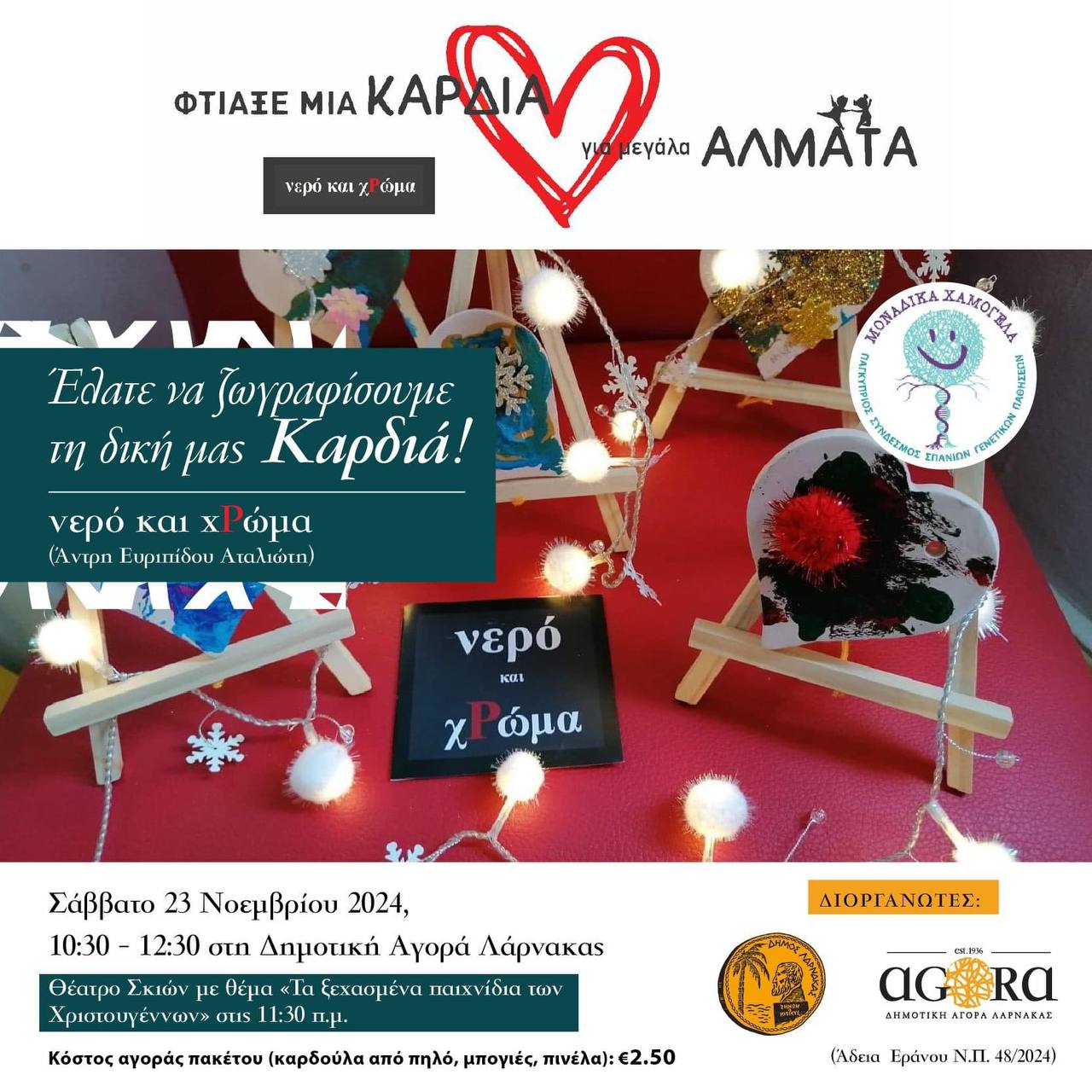 Муниципалитет Ларнаки в сотрудничестве с инициативой по воде и цвету (Andris Euripidou Ataliotis) приглашает Вас на День сердца - день сердца для благотворительной организации "СДЕЛАЙ СЕРДЦЕ для больших ПРЫЖКОВ" "Вода и цвет", организованной Панкиприйской ассоциацией "Уникальные улыбки" (Лицензия на сбор средств N. 48/20.2018) для поддержки программ детей с ограниченными возможностями здоровья.