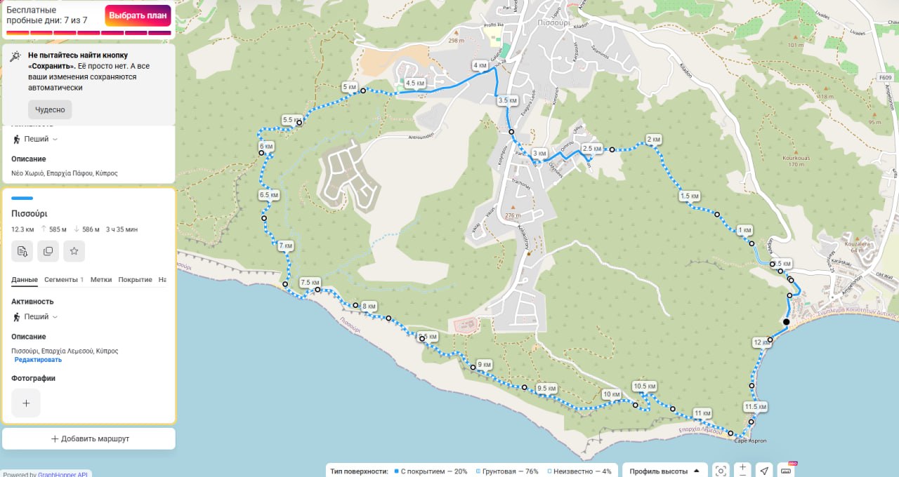 Привет. В субботу утром (примерно в 8:00 выезд из Лимассола) планирую пройти маршрут в районе Писсури. Ходил его уже, красивый =)