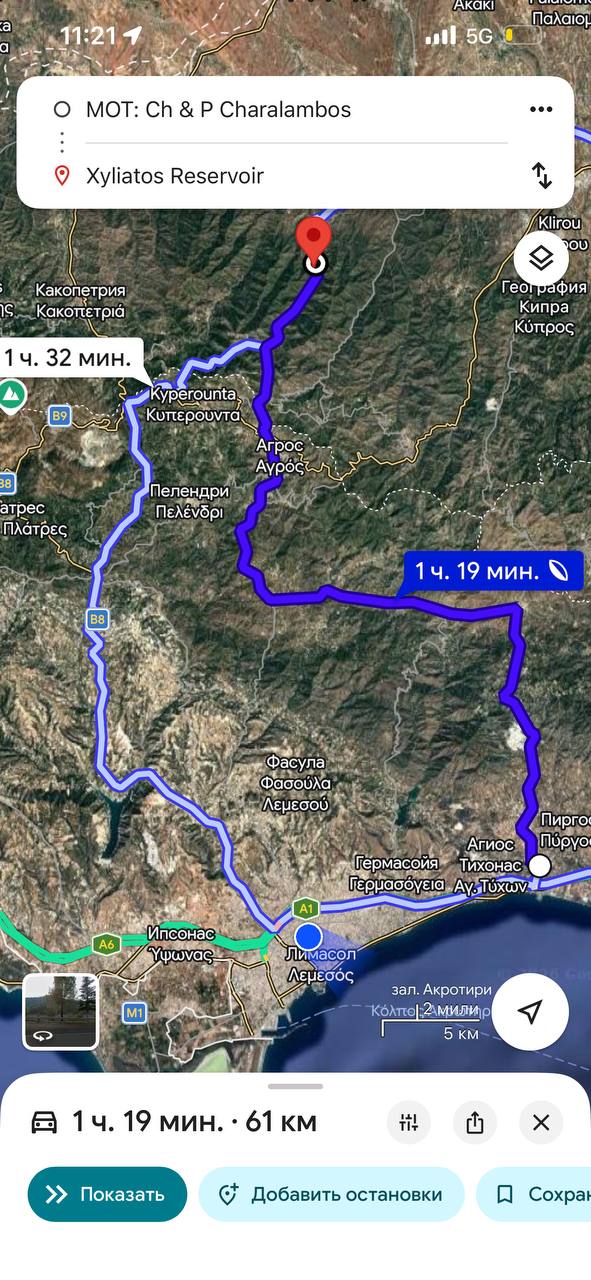В программе - красивая прогулка на пик Кипариссия, виды на Лимассол, водохранилище, ливень и штормовой ветер