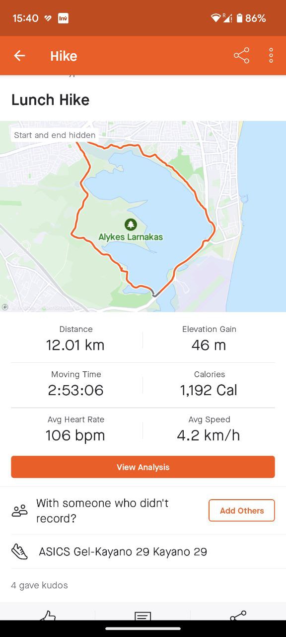 Там как ходить видимо. Если всё время вдоль берега не срезая то 17 примерно.