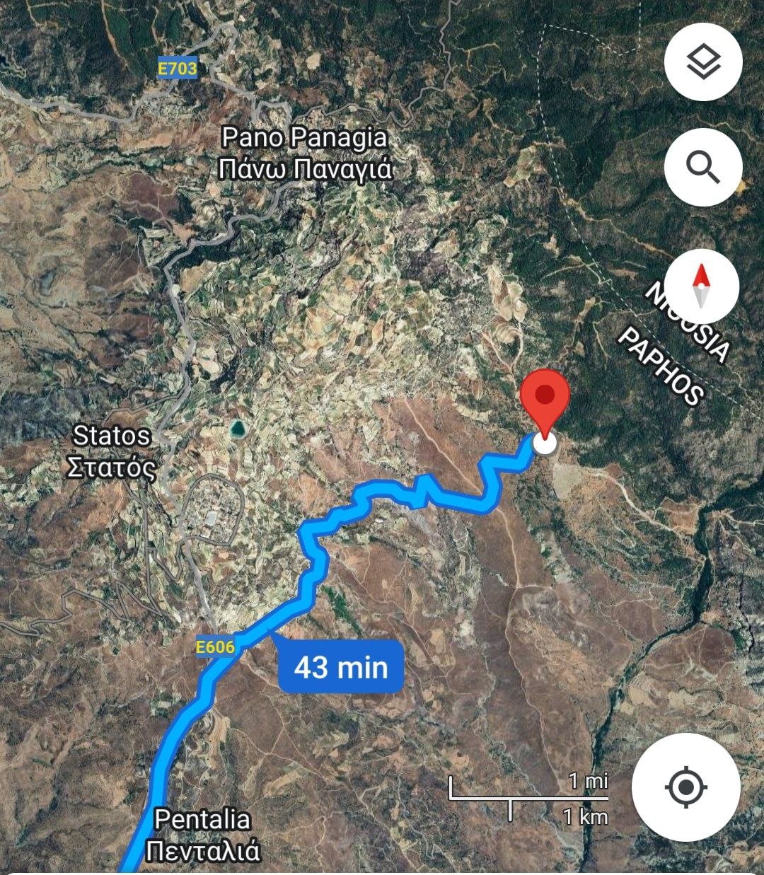 Как написал @shuddh_vijaya он ехал из Пафоса через деревню Koilineia (не через Pana Panaya)