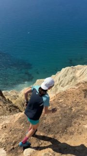 Рыхлые камни и обрыв по обе стороны. Местами руками помогать, чтобы преодолеть каменюки.