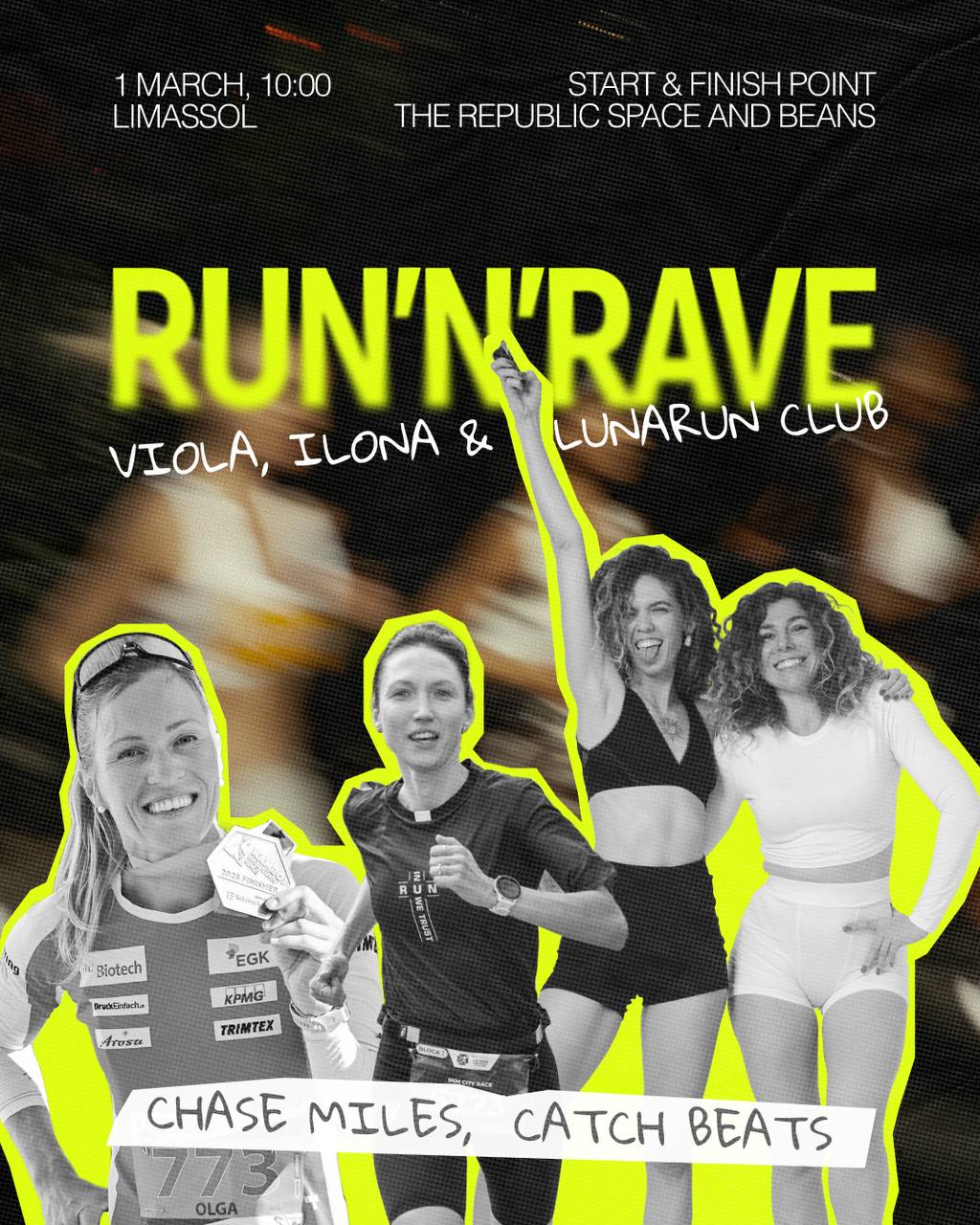@IrinaAngelovaПриглашаем на Run’n’Rave в Лимасоле 1 марта в 10.00 — не гонка, а утренний заряд под музыку! 🏃♀️🎧
