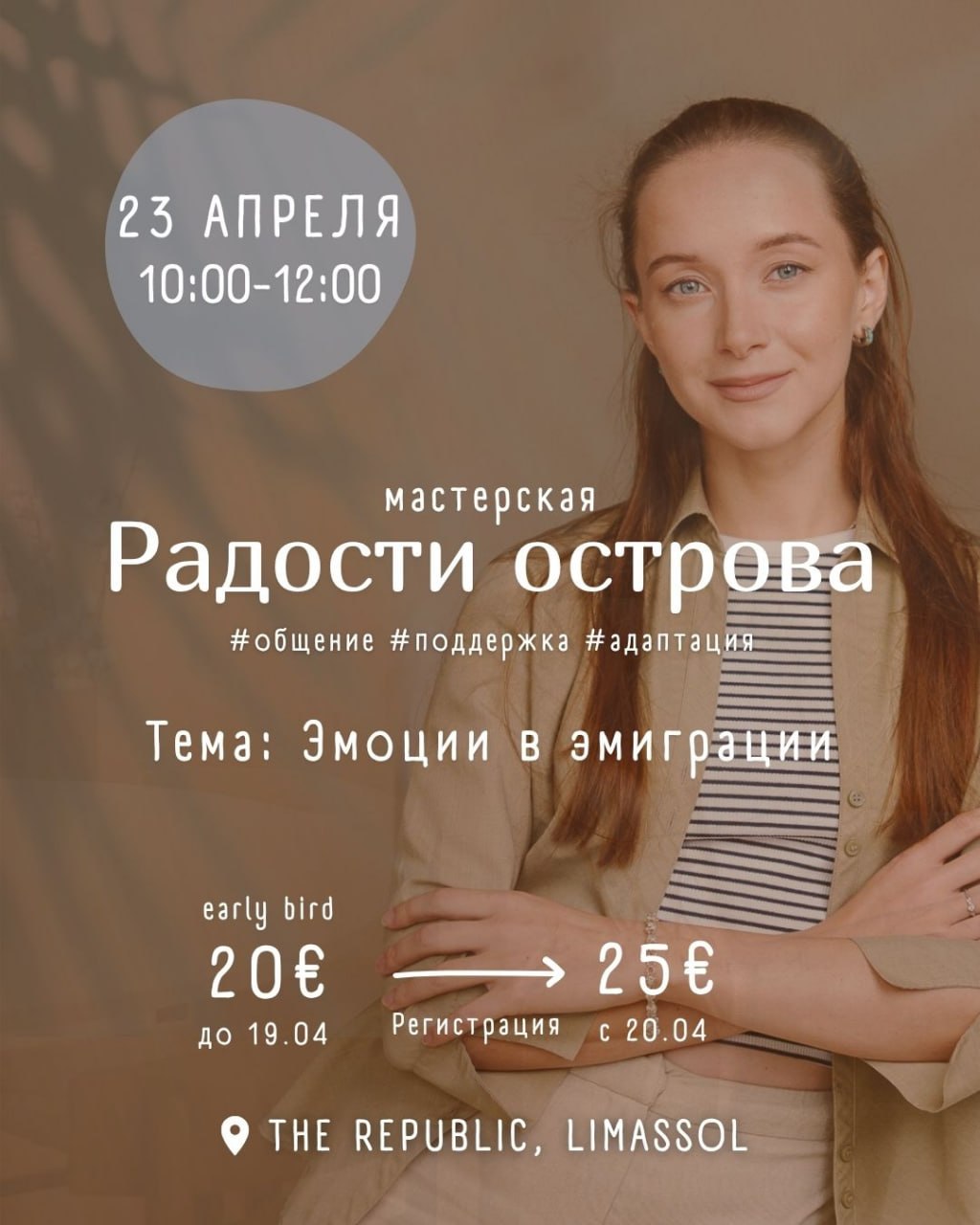 Эмиграция — это одновременно увлекательный и непростой путь. Чтобы проходить его мягче, важно замечать свой опыт и находить поддержку. Для меня важной опорой на Кипре стали люди и сообщества, и на мастерской мне хочется поддержать этот ресурс.