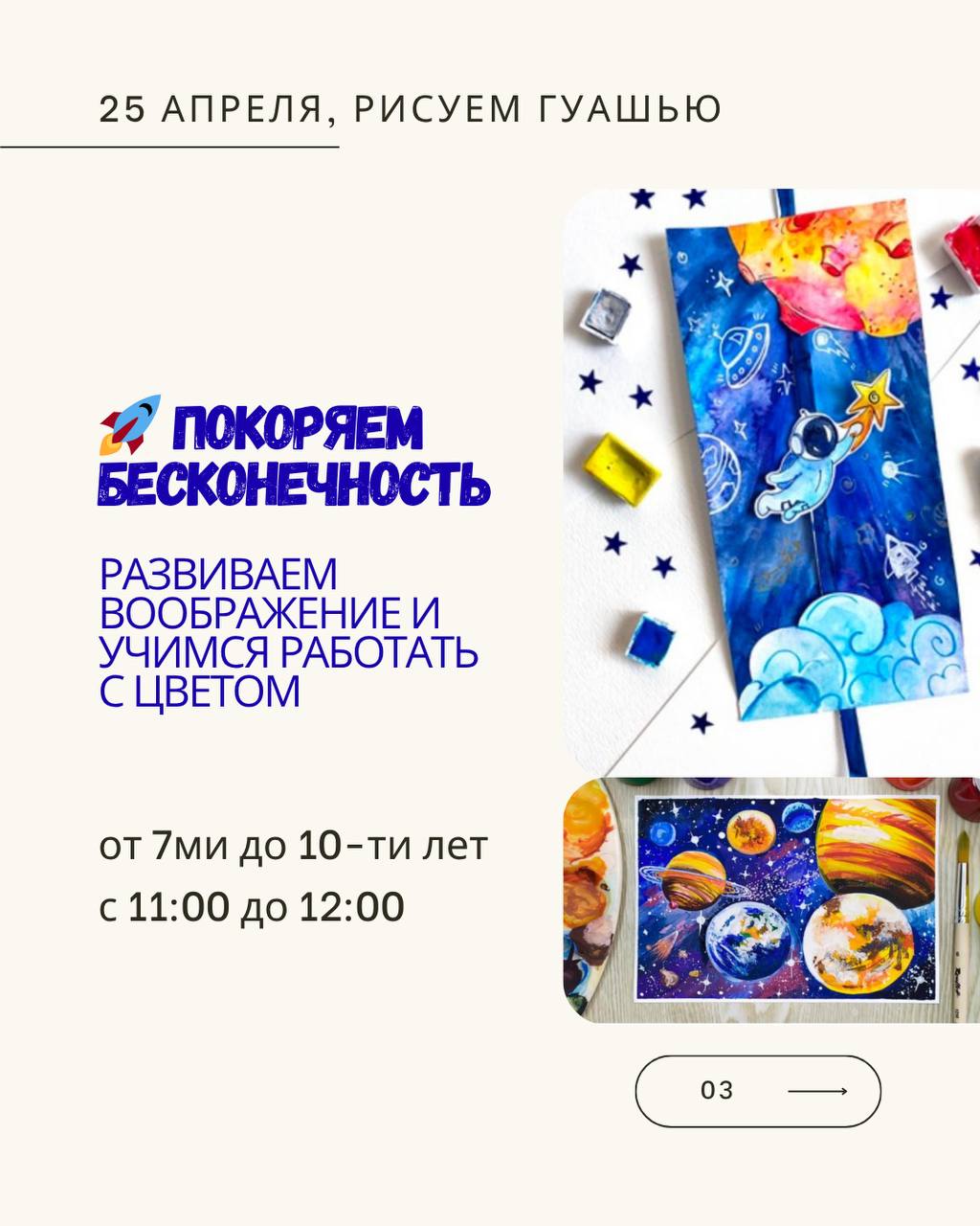 По субботам с 10:00 до 12:00 запускаем занятия по рисованию для детей разного возраста.