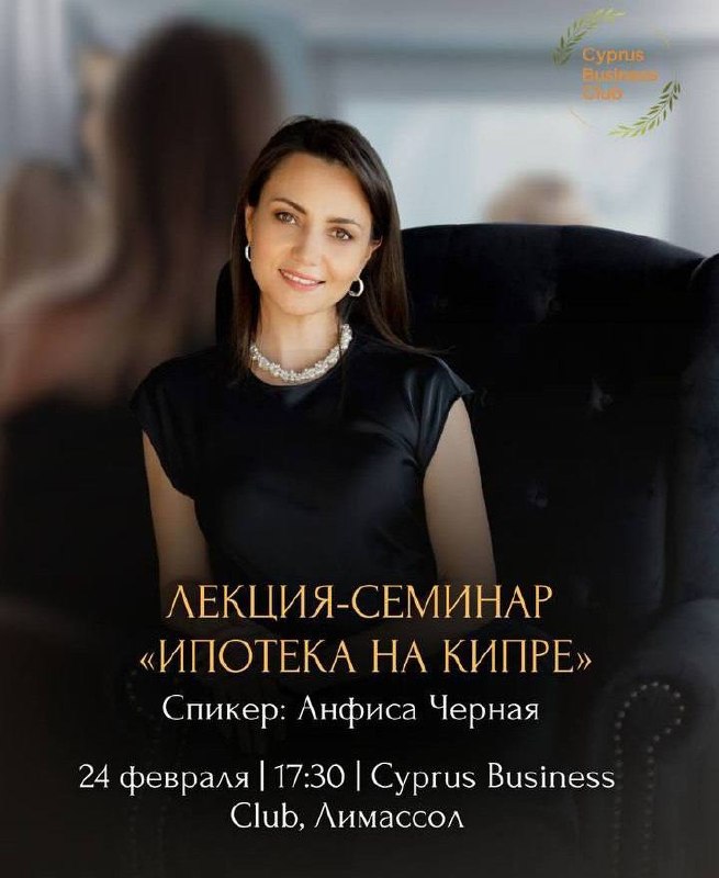 24 февраля в 17:30 в Business Club — встреча, после которой у вас сложится четкое понимание: реально ли получить ипотеку на Кипре, кому одобряют, какие банки работают, на каких условиях и что нужно подготовить уже сейчас.
