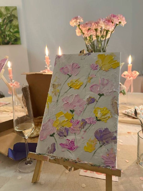 На встрече можно нарисовать картину на тематику «Цветы», выбрать референс и создать свой первый шедевр под чутким руководством художницы