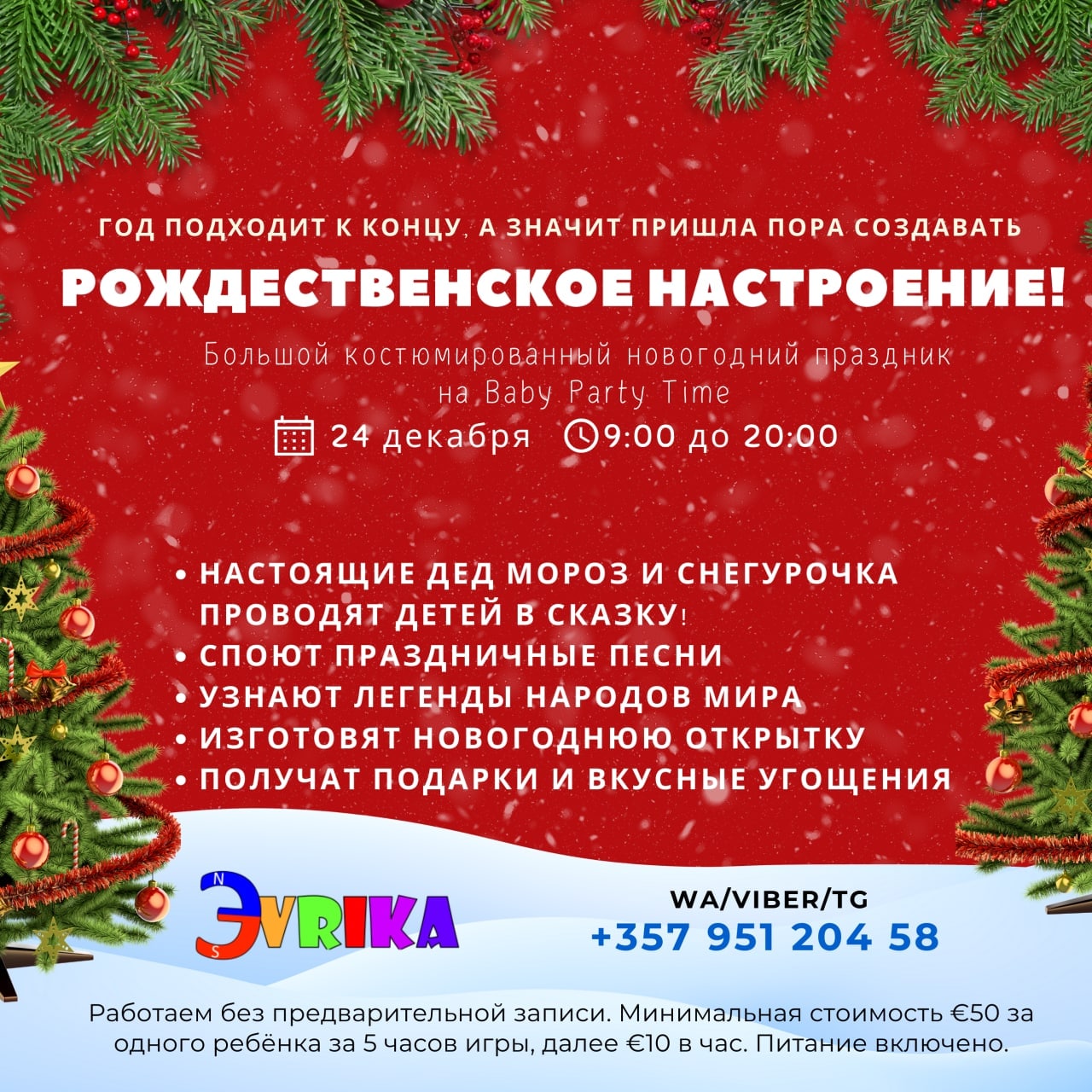 Мамы Лимассола! Год подходит к концу, а значит пришла пора создавать Рождественское настроение! Большой костюмированный новогодний праздник на Baby Party Time в эту субботу, 24 декабря, с 9:00 до 21:00.
