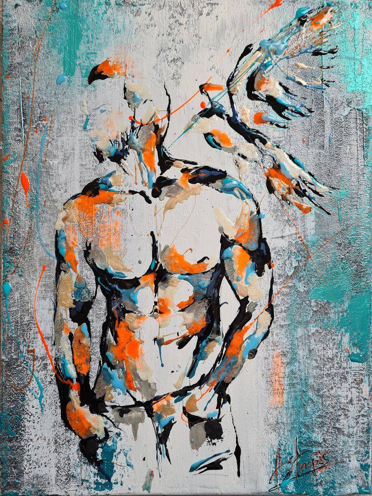 И так, пишем женское либо мужское тело акрилом, приветствуется поталь и текстурная паста.
