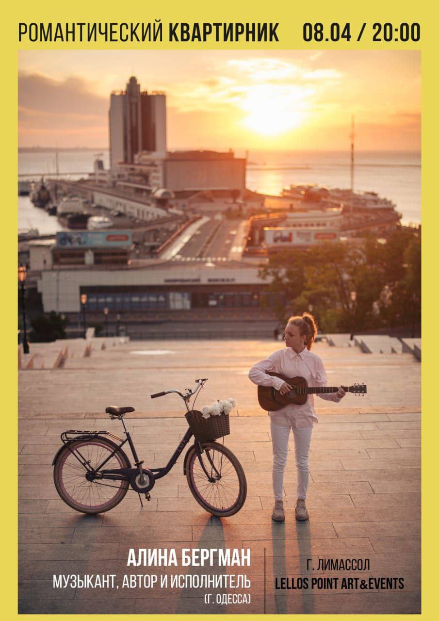 Приглашаем 08.04, в четверг, в пространство Lellos PointArt&Events, г. Лимассол, на «Романтический Квартирник» с Алиной Бергман❤️🎼