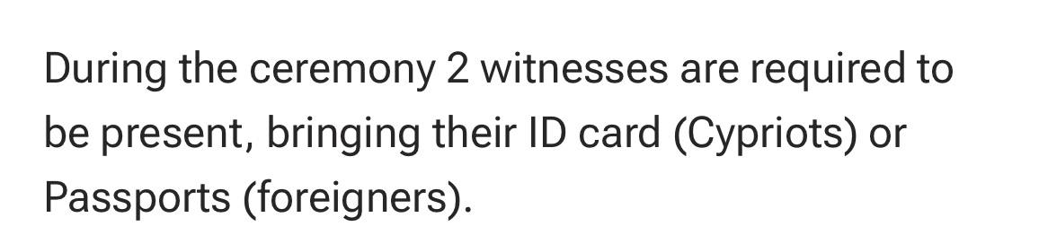 А в каком городе вы были свидетелем ? Они хотят да копии паспортов свидетелей и сказали резидентов ... А у меня родители и друзья с другой страны ... Может вы хотите в пафосе в мерии быть нашим свидетелем на 20 минут? Если вы свободны в этот день будете ... Нам нужно в Пафосе