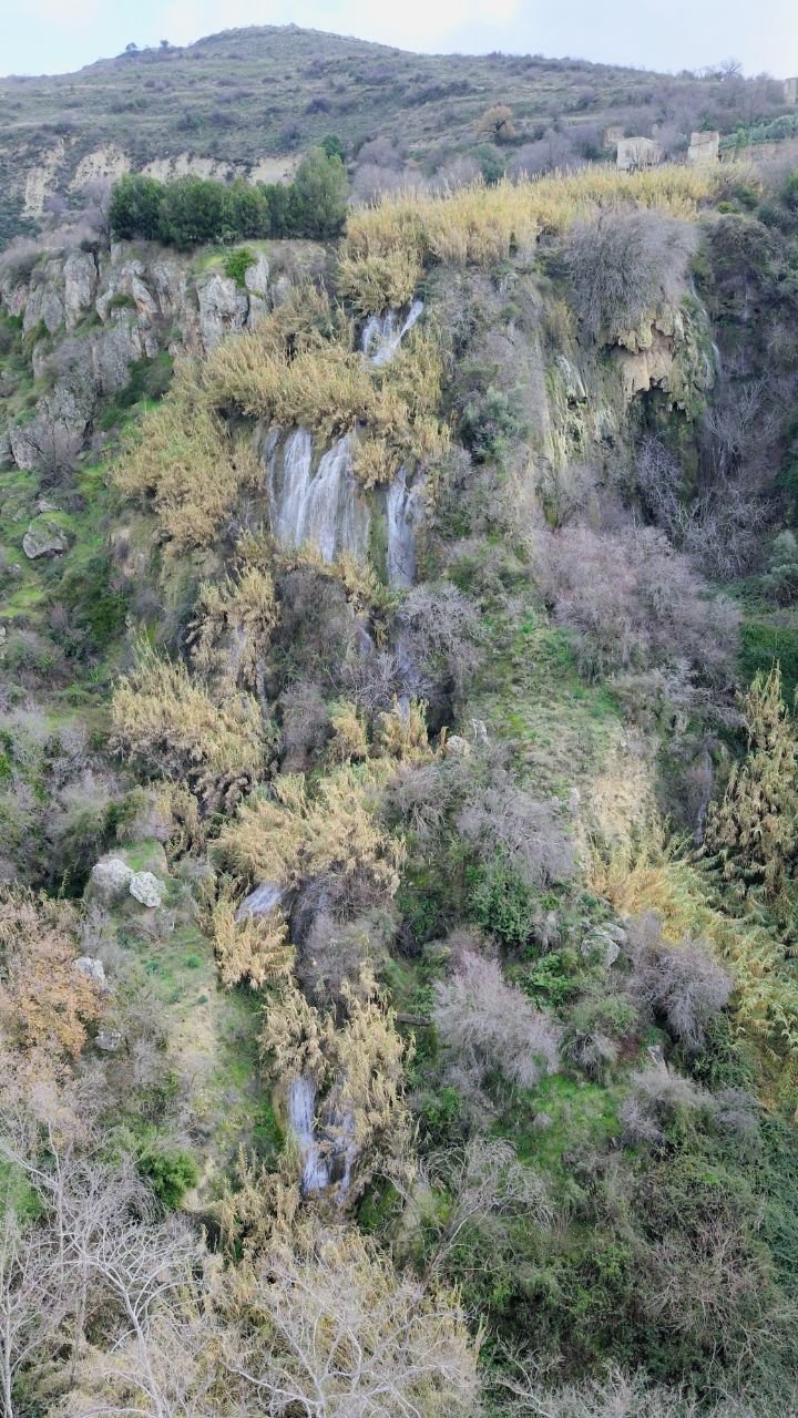 Зимний водопад Trozena. Вода падает вниз со стометрового уступа. Между заброшенными деревнями Trozena и Geravasa.