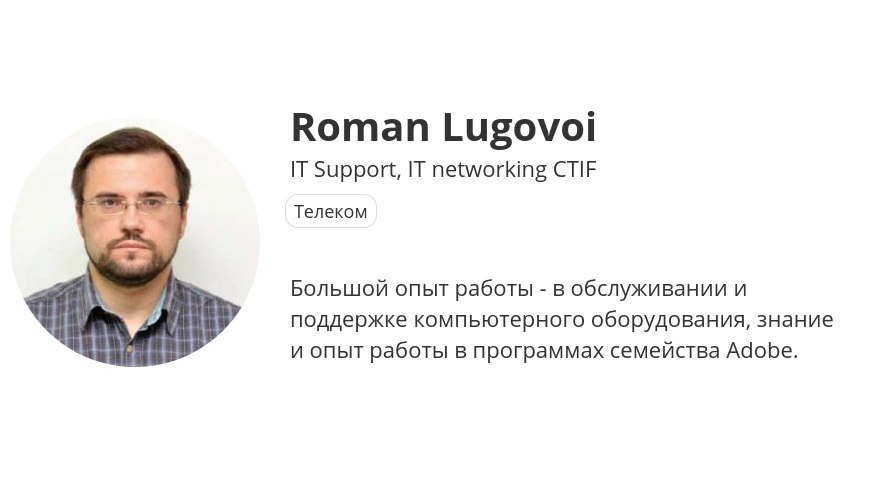 В разработке более 14ти лет. Работал в таких компаниях, как Яндекс и Epam. В Яндексе участвовал в разработке медиапроектов: Афиша, Телепрограмма и другие; а так же руководил фронт-разработкой Яндекс.Метрики. В Epam разрабатывал систему для нагрузочного тестирования проектов и мониторинга для одного из крупнейших поставщиков софта для брокерской сферы.
