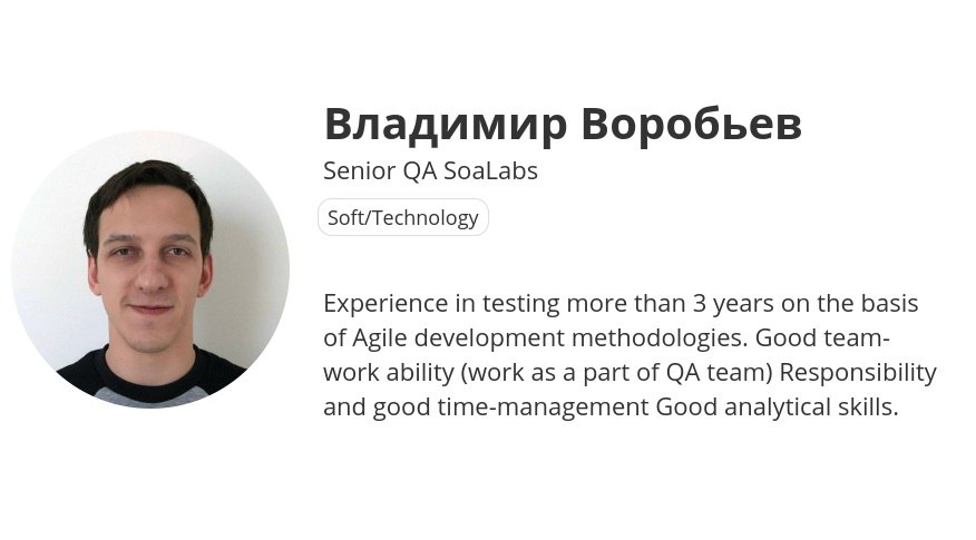 Дополнительным преимуществом будут знание Selenium-архитектуры и практический навык создания автоматизированных тестов (от полугода).