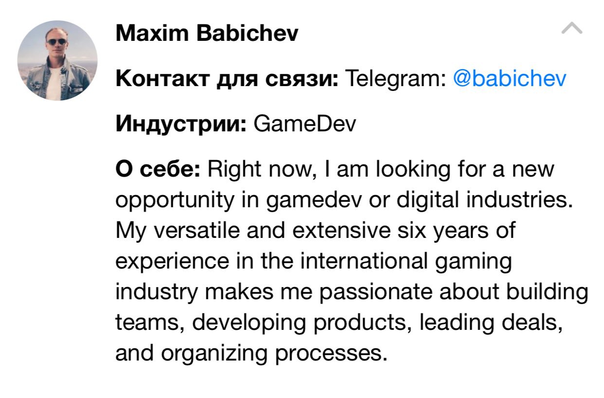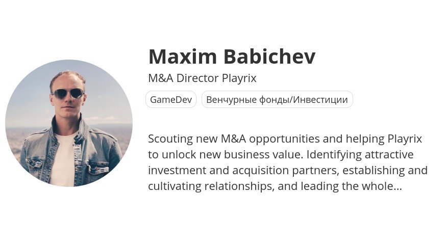 Привет! Меня зовут Максим, за последние 6.5 лет я работал во ВКонтакте в должности Руководителя игровой платформы и в Playrix на позиции Business Development Director. Сейчас ищу новые возможности, особенно на Кипре.