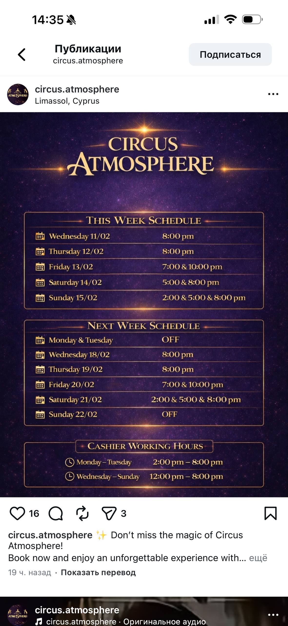 Добрый день. Может кто нибудь в курсе. До какого числа цирк будет в Лимасоле? До них не дозвонится :(( Спасибо!