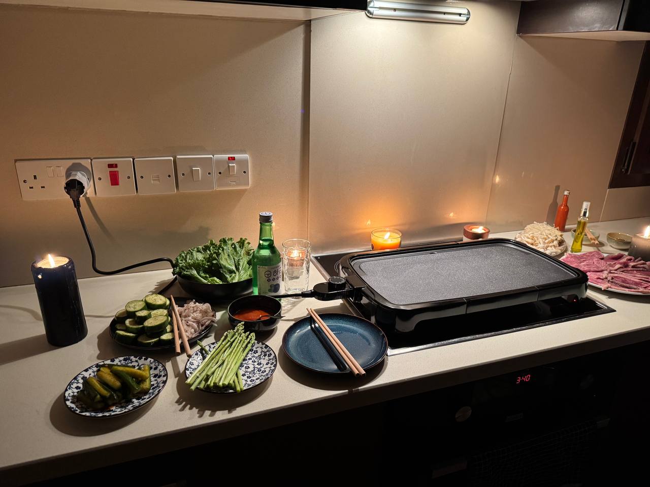 Там в шекспире встроили гриль в стол :) можно пожарить сходить