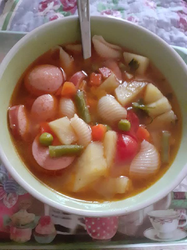 пока у меня только один такой - 750мл куриного супа с мягкими кусками курицы, овощами и всяким таким.