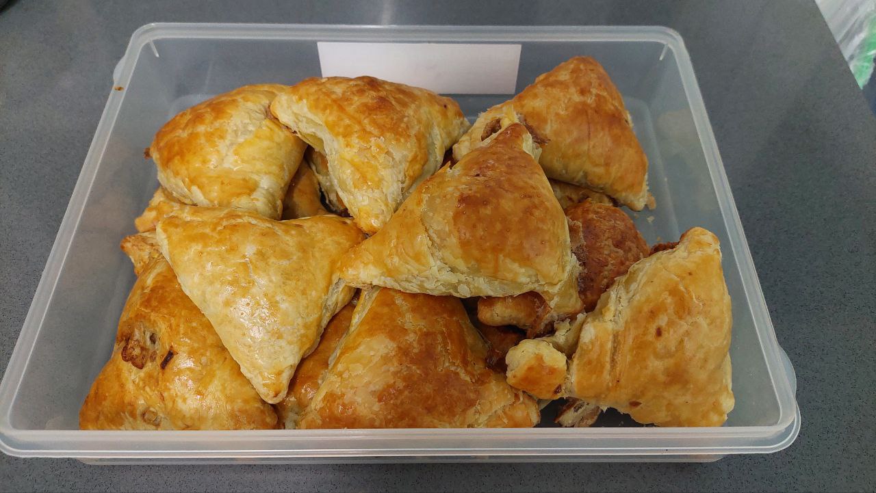 слоеное слоеному рознь, тут слоеное продается на сливочном масле (ну маргарине ок) и получается в результате очень ломким нежным и крошащимся. Самсу делают со слоеным на растительном масле. Отчего оно получается плотнее и лучше держит начинку.