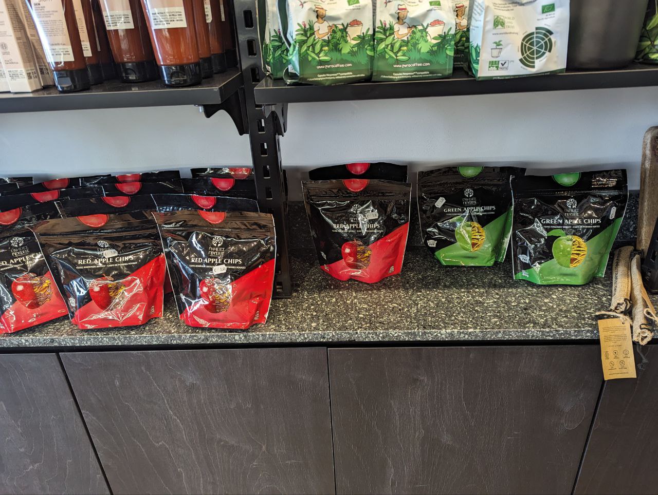 В склавенитис есть чипсы овощные в отделе здорового питания и в детском питании, есть пастила, рыбки фруктовые, снеки овощные, рисовые фруктовые хлебчики типа корнер
