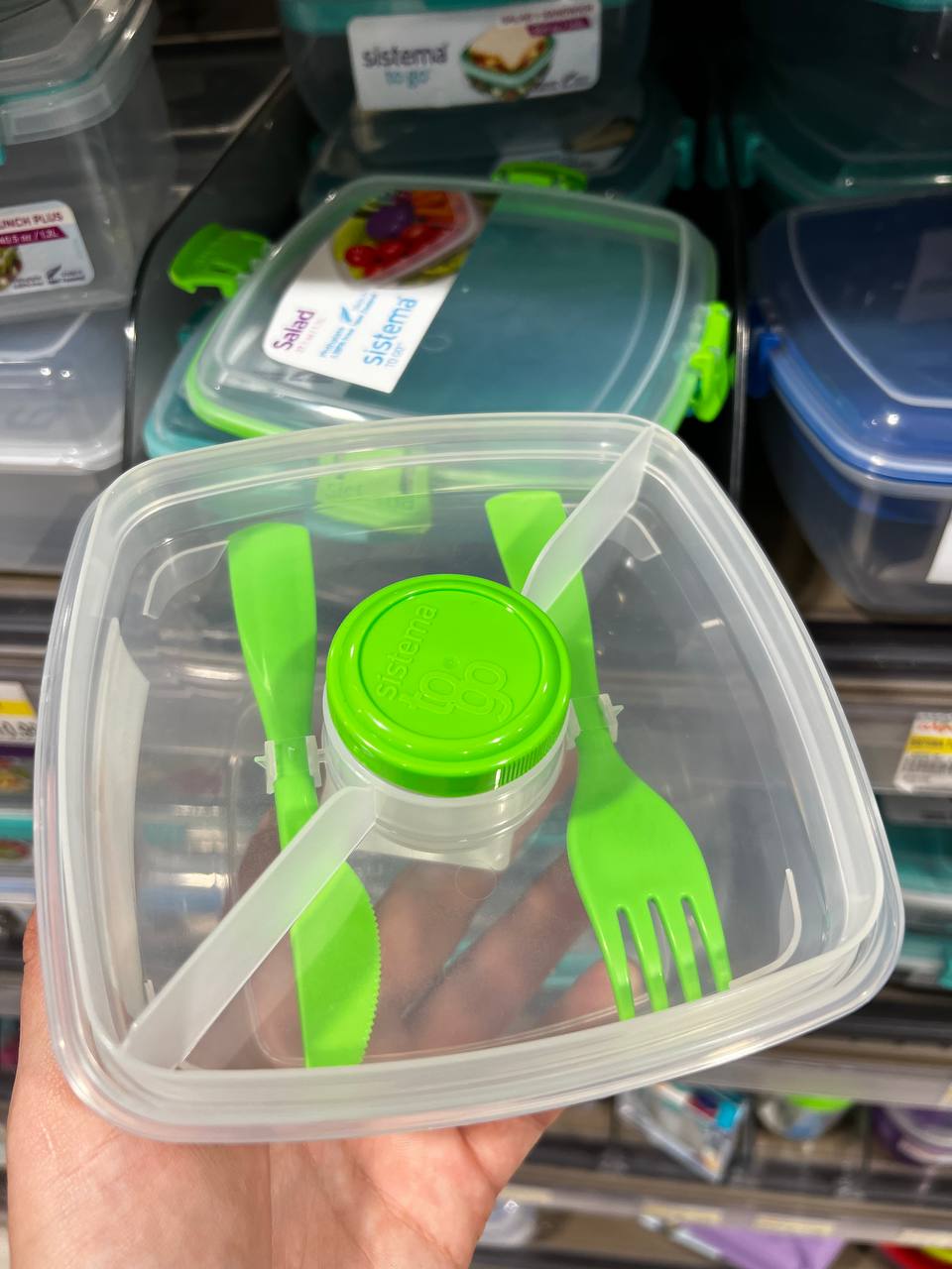 Вот это боль, начиная от поиска ланчбокса. Вот нашелся неплохой вариант, внутри баночка для анализов, можно дать раздельно салат+соус, пасту+соус, пельмени+сметану, оладьи+варенье и т.д., но блин почемууууу они сделали вилки на нижнем этаже внутри салата/пельменей, чому нельзя было их в верхней крышке сделать? 🤷🏼♂️