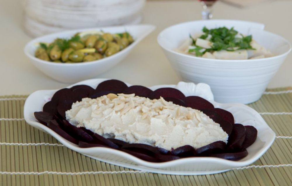 В рецепте объединены блюда из разных концов острова: пафосский миндальный салат (по сути, несладкий марципан, превращенный в кипрскую закуску ― амигдалосалату) и колоказия, отваренная так, как это делают на полуострове Карпасия.