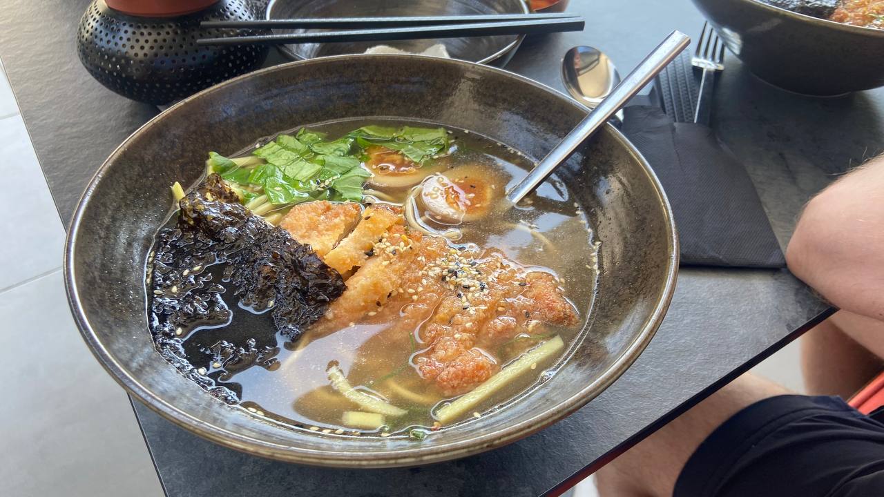 Рамен из иста, ну что сказать. Последний раз ели его года полтора назад. С тех пор ребята сделали левел ап и не один. Особенный респект за яйцо. Вы желток шприцуете соевым? Очень интересно получилось)