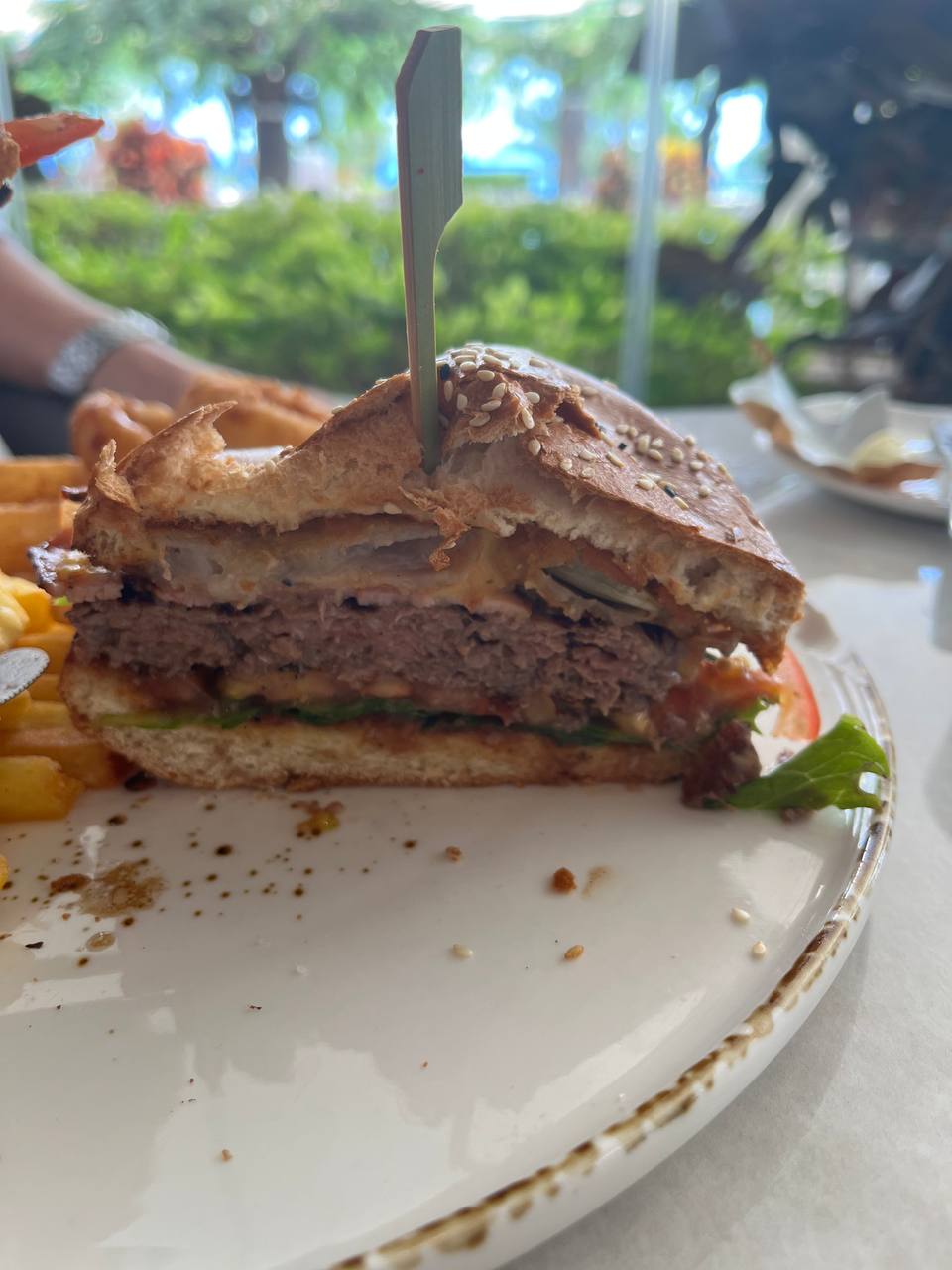 Так выглядит дорогой бургер в популярной бургерной. Он не очень большой по площади, но зато толстенький. Хорошо обжаренный с двух сторон и сочный внутри