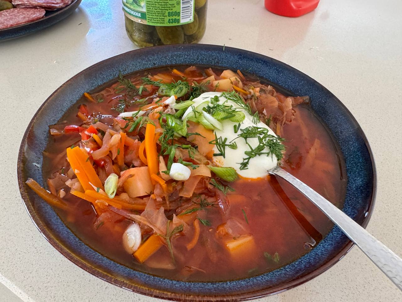 Врач прописал диету, но от борща отказываться не готов 😂 поэтому соорудил диетический, и чуть чуть намазки из копченого сала 😂