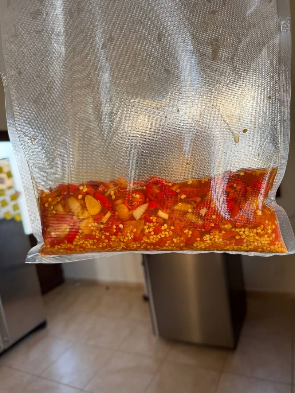 Кстати, а кто-то сам острые перцы ферментирует на соусы? Я вот решил попробовать. Тут каролина рипер и еще 3 разных вида острых перцев, лук и чеснок.