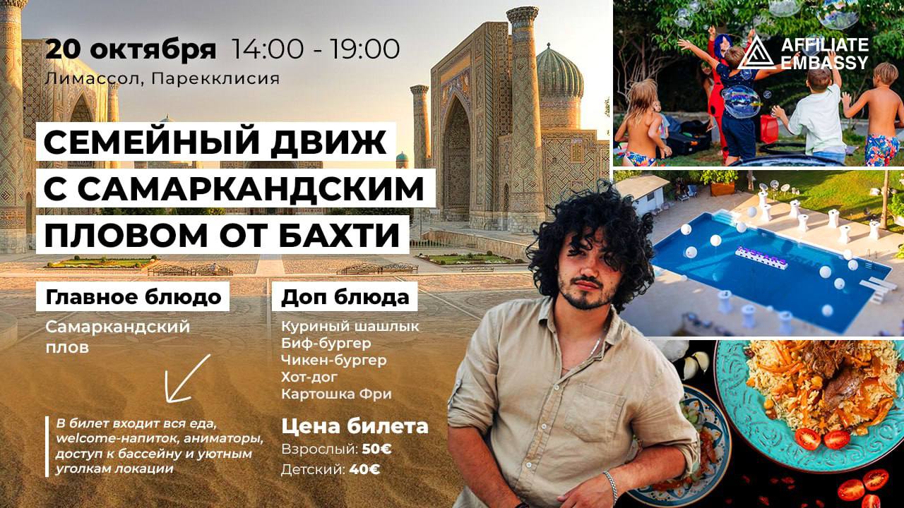 В это воскресенье 20 октября в Affiliate Embassy классный семейный ивент с настоящим самаркандским пловом, другими вкусными блюдами, отличной атмосферой и душевным общением)