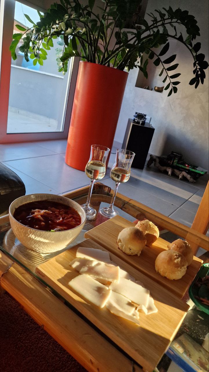 Палинка к борщу не подходит. А бокалы к палинке не подходят)