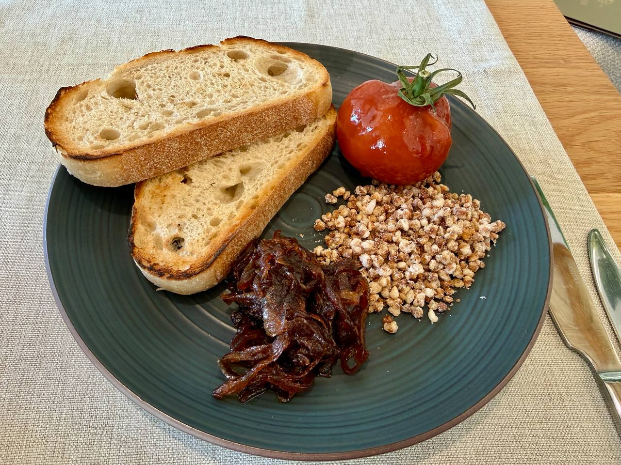 Хлебушек, оладьи, намазки вкусные, картошечка, яички, лосось, сыр, прошутто - ну и все идеальнейшего вкуса. Самое главное - точно все домашние найдут «по душе» себе что-то, не надо думать кому что заказывать и пр