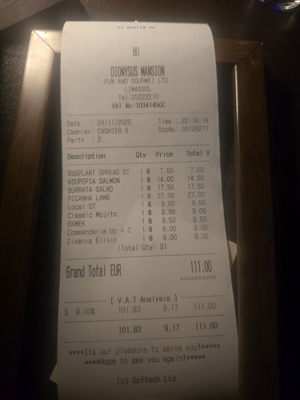 Ходили вчера в усадьбу Диониса. Это не первый визит к ним,но вчера как то было странно. Я понимаю что на кипре вче любят кушать с лимоном, но тут как-то в целом было ту матч.