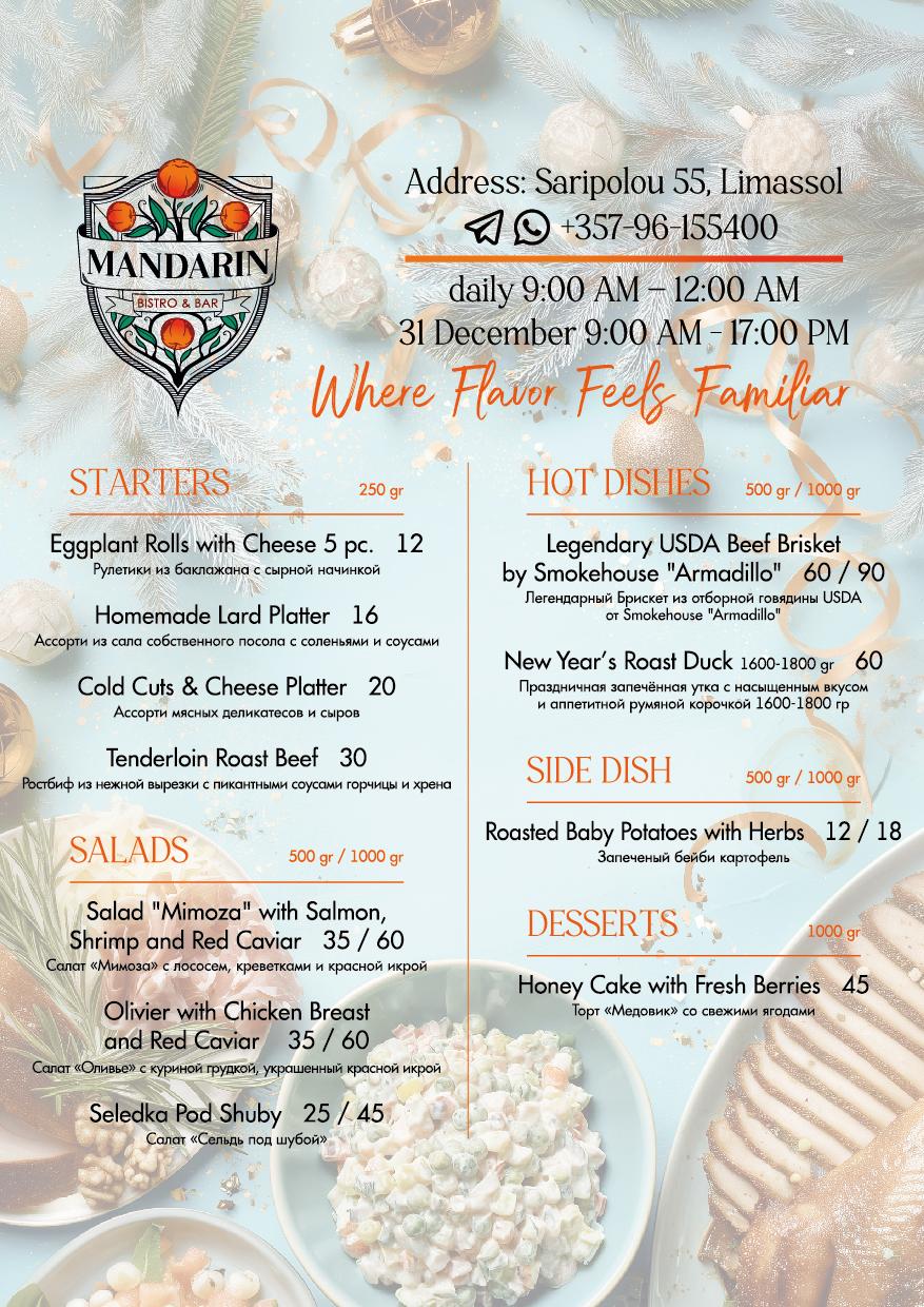 кому лень готовить на стол на НГ подготовили специальное меню от мандарина, килошку оливье там и прочее. Заказывать можно уже сейчас, забирать (или получать в доставке) 30 и 31 декабря. Контакт либо на скрине либо @LaraMaliukovskii )
