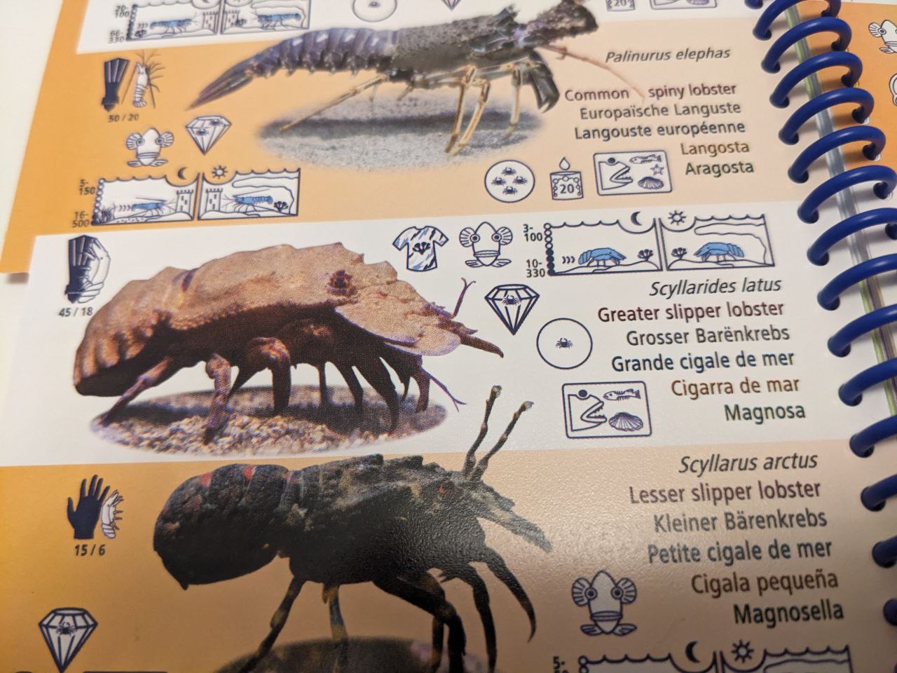 Ночью они могут прямо у поверхности сидеть, рак-медведка по русски. Scyllarides latus. Очень милые зверюги.