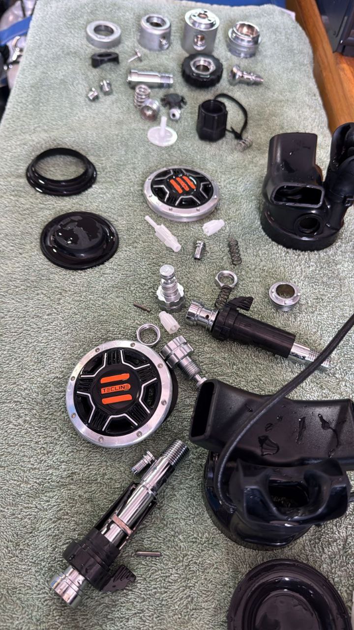 Обслужил свои регули Tecline у Julio из Dive the Rock. Он офф сервис теклайн на Кипре. 120 ойро за комплект из первой и двух вторых ступеней. Делал два комплекта.