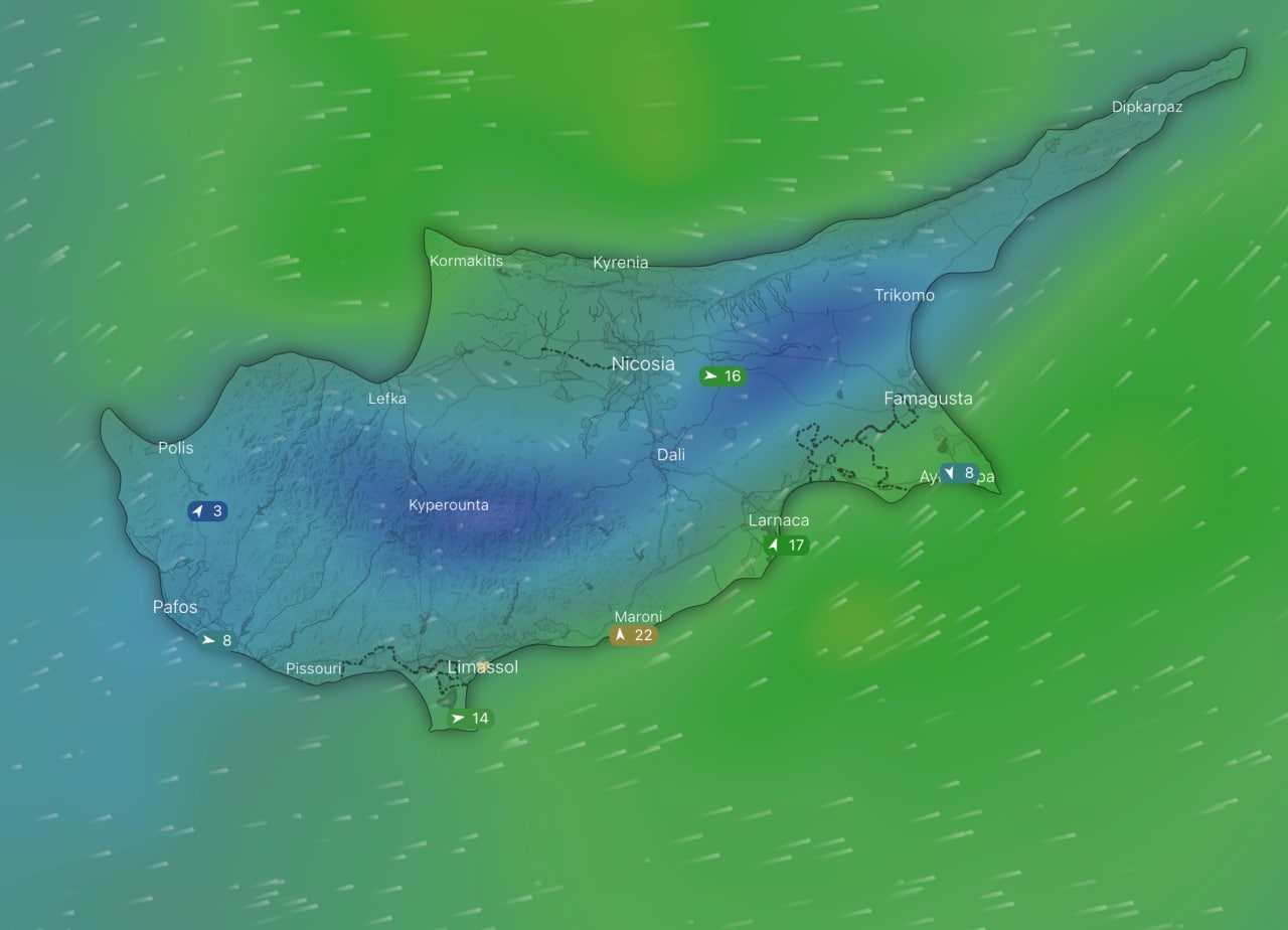 А вечером, когда возвращался в Лимассол - снова дуло со стороны Акротири, причём сильно и порывами.