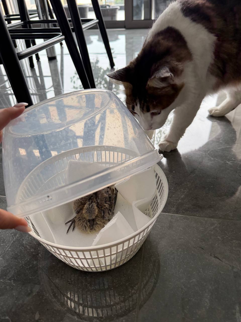 @maryhanozriЗдравствуйте! Подскажите, что делать в таких ситуациях, кот принёс птенца, он живой и активный, повреждений нет.