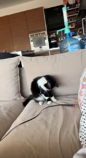 Из активностей предпочитает прыжки, кайфует, когда можно что-то высоко половить, будь то перышки или звенящие мячики)