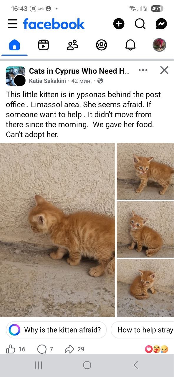 Турист написал мне о группе кошек рядом с Mrs Jones Coffee в старом городе Лимассола, поэтому я делюсь этим здесь в надежде найти нужных людей.