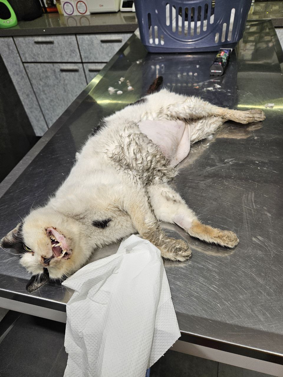 Я в первый раз сталкиваюсь с таким кейсом, я не волонтер, просто как и многие здесь не смогла оставить кошечку в беде. Ранее я писала, что возле порога нашла раненую девочку и отнесла ее в ветклинику (CY Vets), потом искала клетку чтобы на время ограничить ее движение для обеспечения покоя (клетку в итоге купила). Она молодая, не больше года (из местной колонии)
