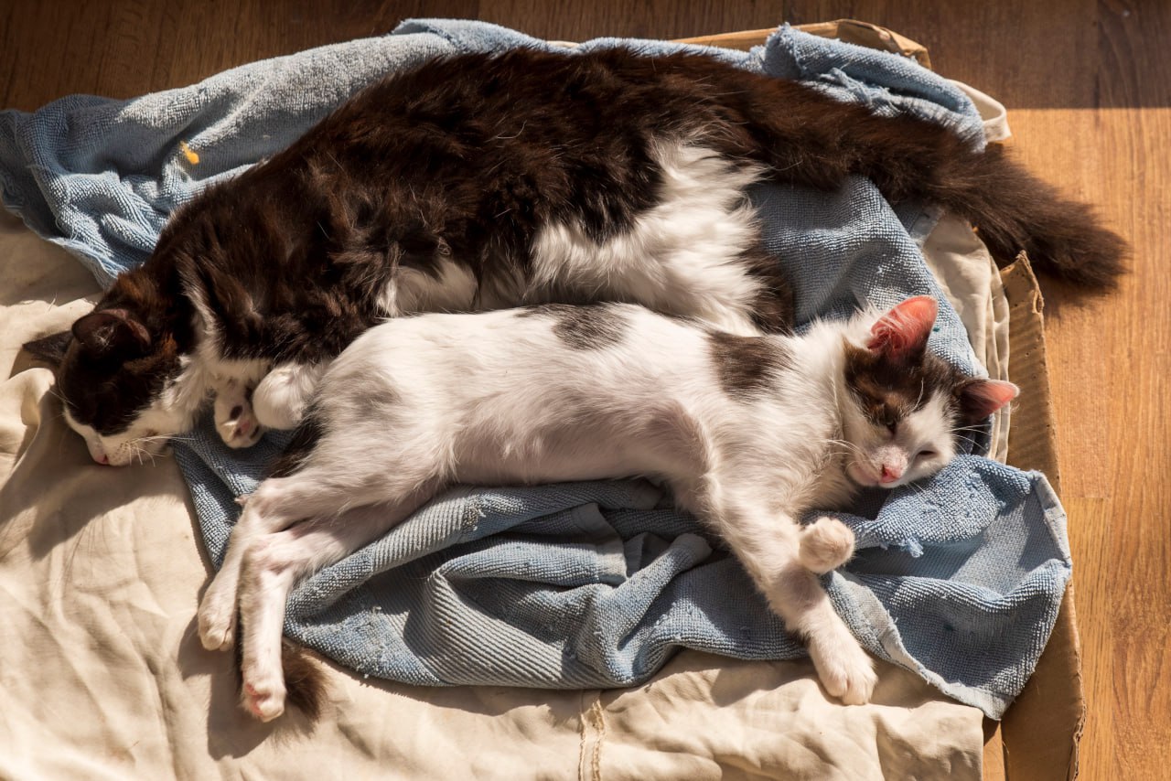 Совершенно лояльны к детям, так как с самого маленького возраста с ними постоянно общаются мои 3 дочки, плюс мама у них хоть и уличная, но тоже очень ласковая, мурчащая и готовая подставлять человеку даже животик. Скорее всего найдут общий язык с другими домашними животными, особенно Милли и Миос.