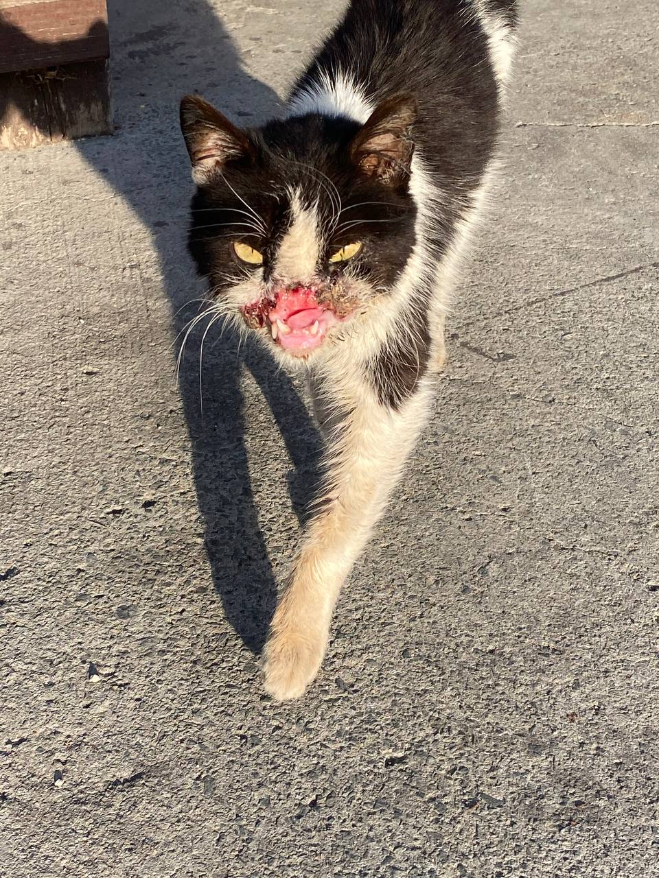 В этой локации кот с разодранной (?) мордой, не успела заскринить, дурацкий фб сбросил. Рыжий большой кот.